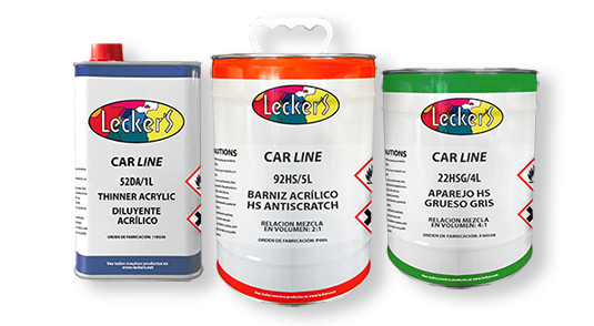 Barniz acrílico de alto contenido en sólidos, con protección anti arañazos, especial para el repintado del automóvil, Relación de mezcla 2:1 en volumen. Con alta resistencia a los rayos ultravioletas del sol, secado rápido, buena extensibilidad y gran dureza.